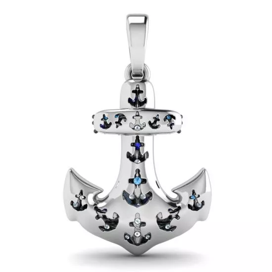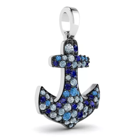 18K 白金锚蓝宝石吊坠