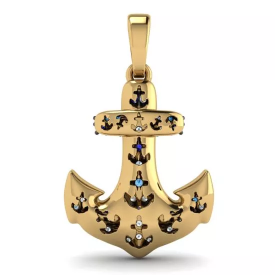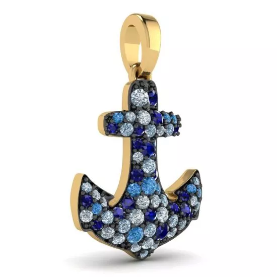 Style # 4619 - 18K 黄金锚蓝宝石吊坠