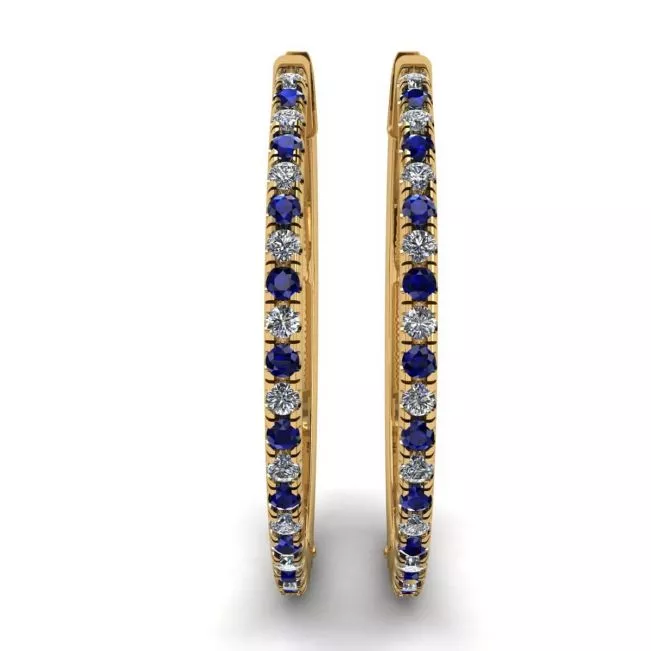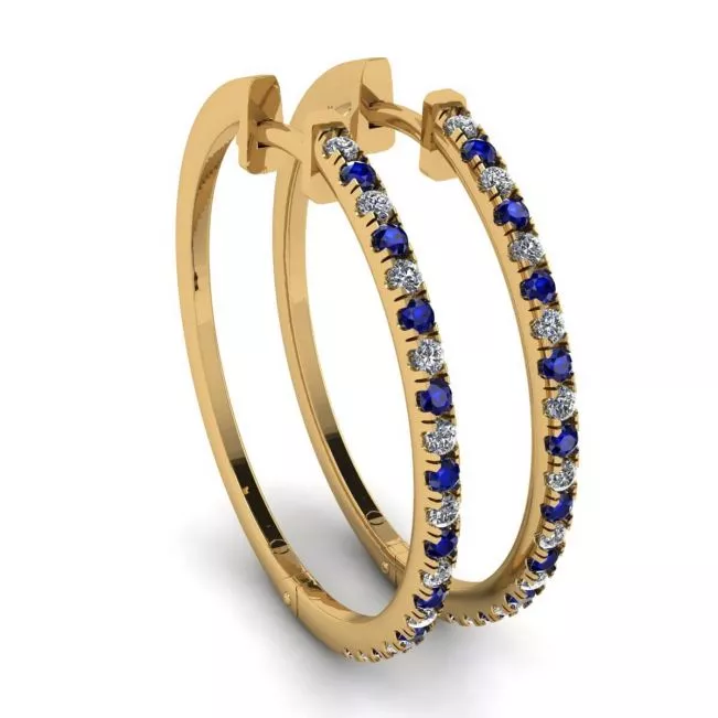 蓝宝石耳钉搭配可拆卸钻石光环外套黄金