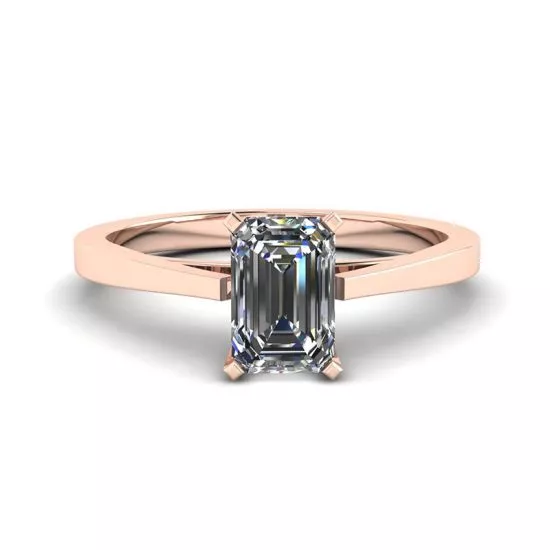 未来风格 18K 玫瑰金祖母绿切割钻石戒指