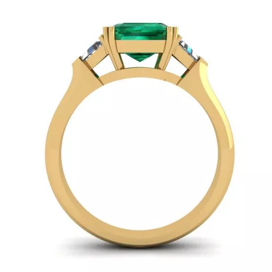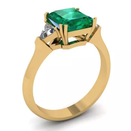 3 克拉祖母绿戒指镶三角边钻石黄金