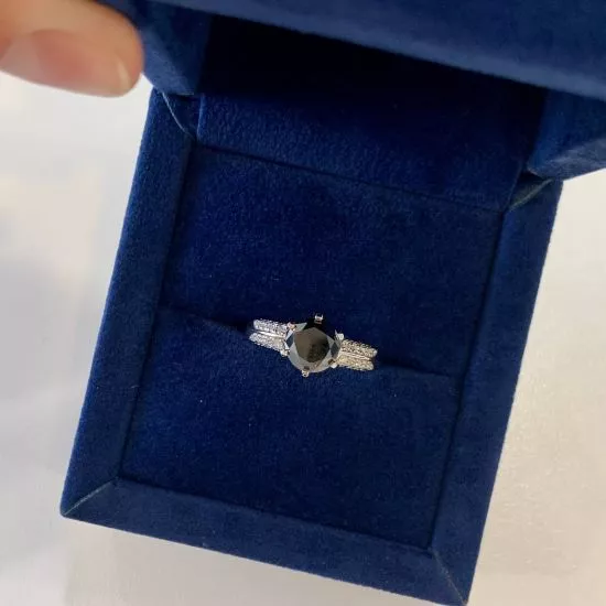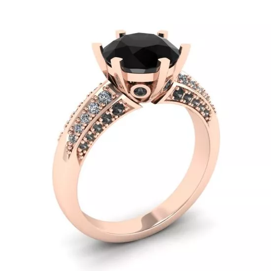 6 爪黑钻双色密钉戒指玫瑰金