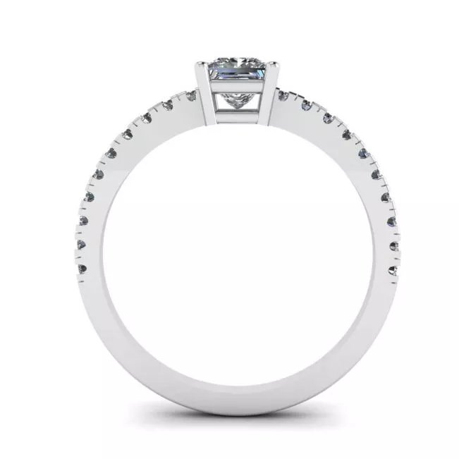 公主方形切工 V 侧铺钻石戒指