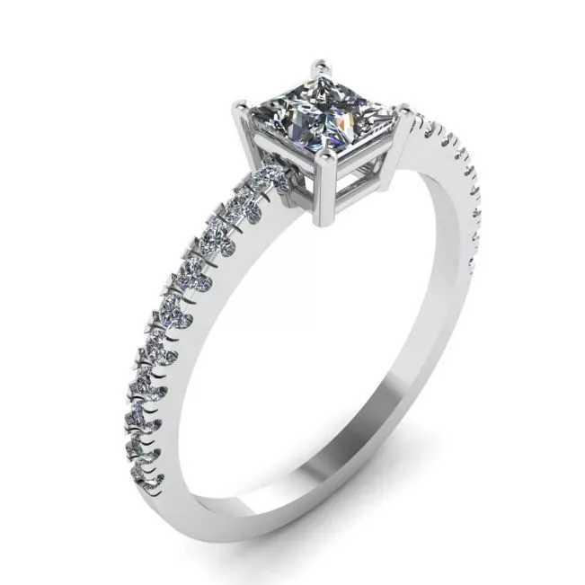 侧铺公主方形切割钻石戒指