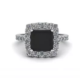 Halo 4 毫米公主方形切割黑钻石耳钉