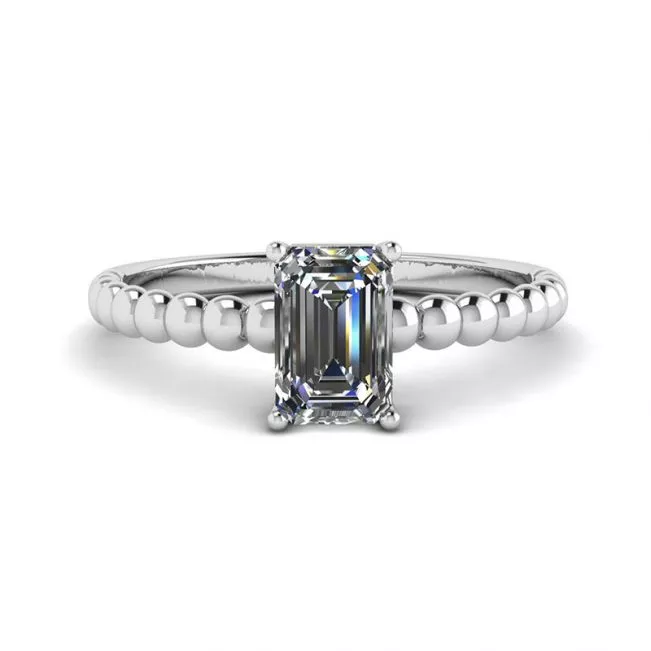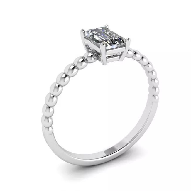玫瑰金串珠戒指上镶嵌圆形钻石单石