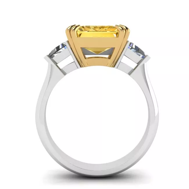 公主方形切割钻石戒指,镶有 3 颗小边钻石