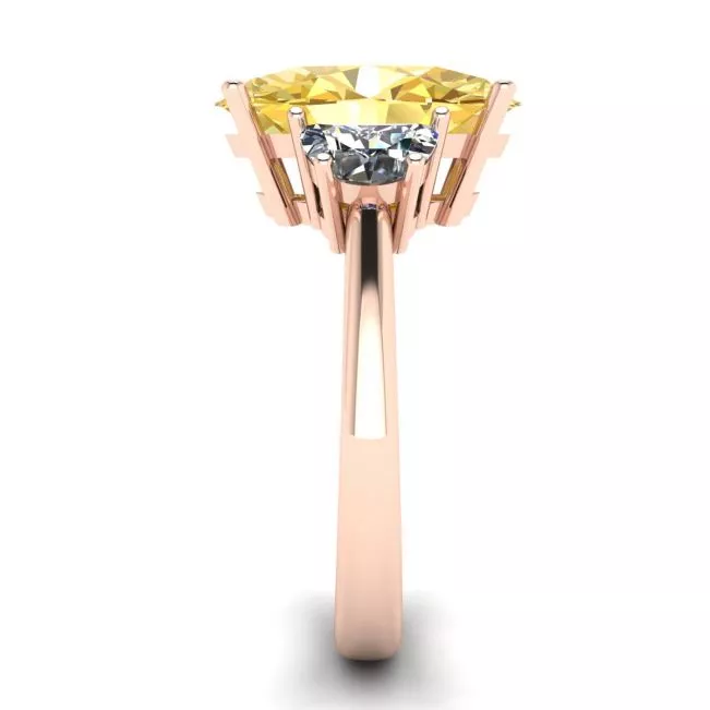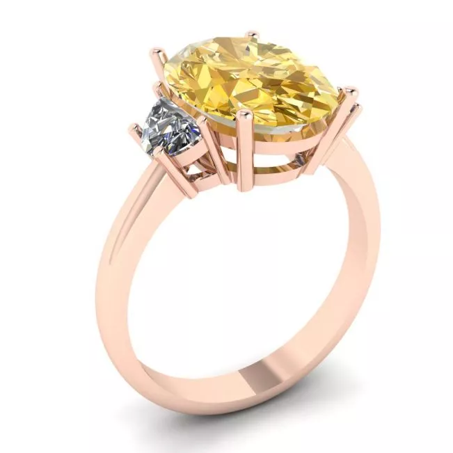 椭圆形黄钻配侧面半月形白钻戒指黄金