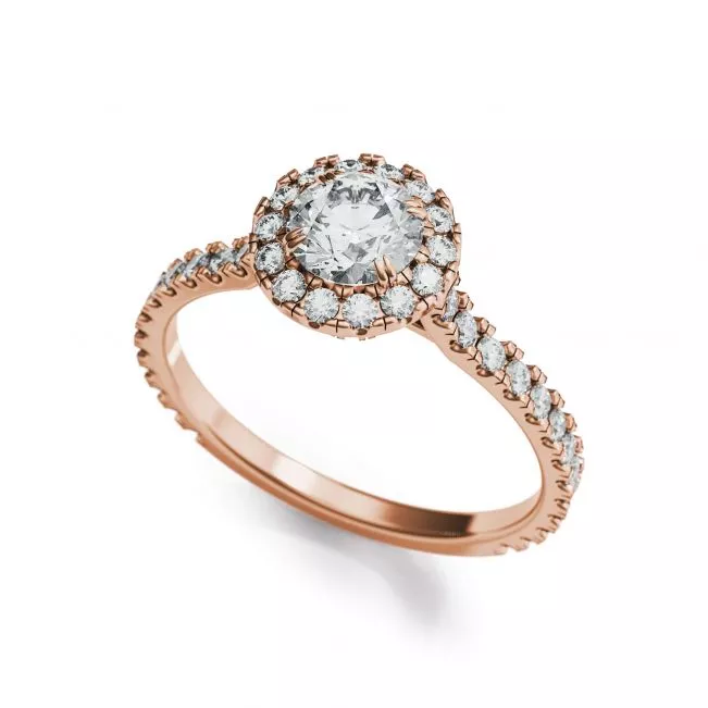 18K 玫瑰金光环圆形钻石戒指