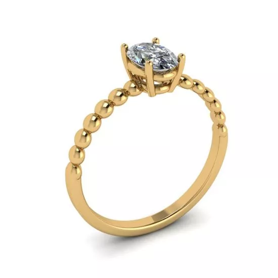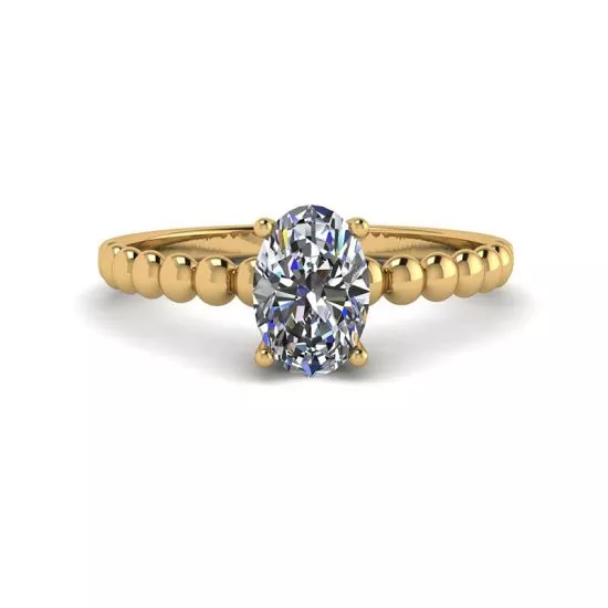 18K 黄金串珠戒指上椭圆形钻石