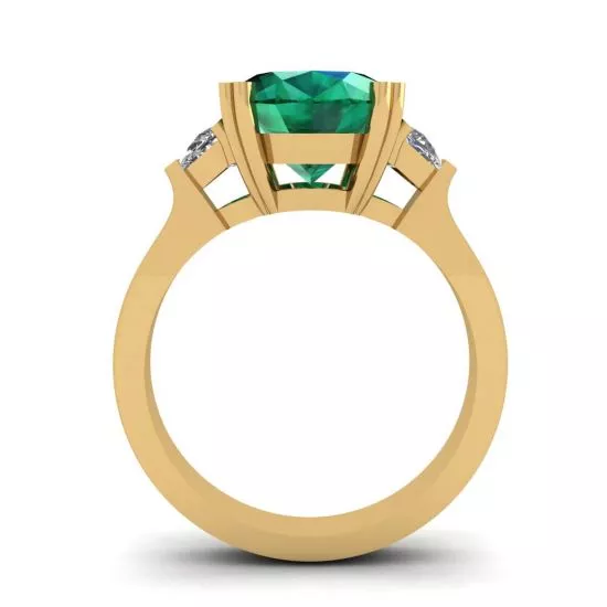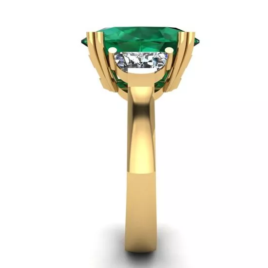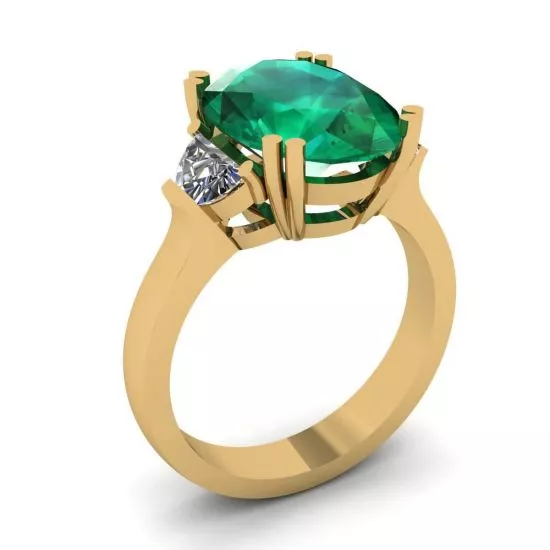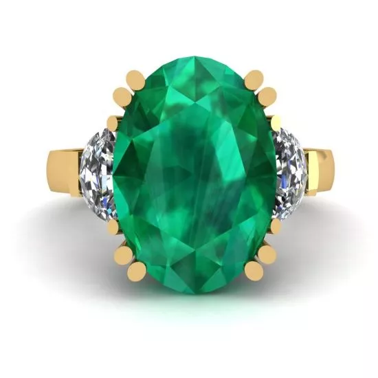 椭圆形祖母绿配半月形钻石戒指黄金