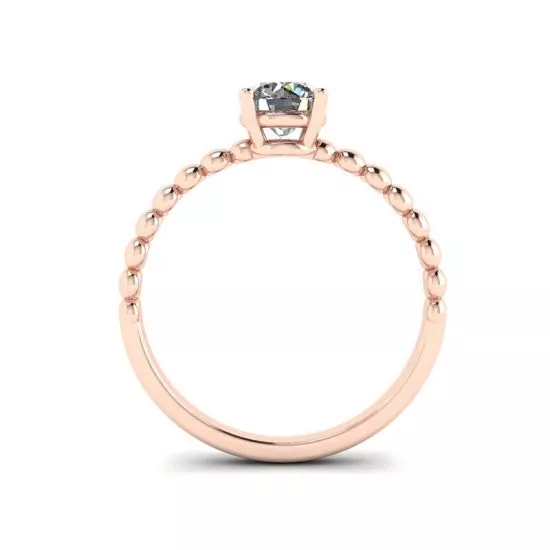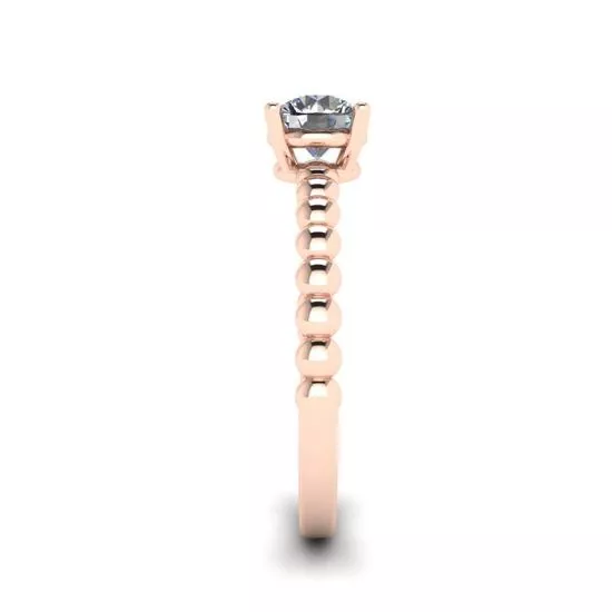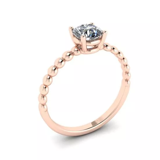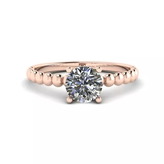 玫瑰金串珠戒指上镶嵌圆形钻石单石