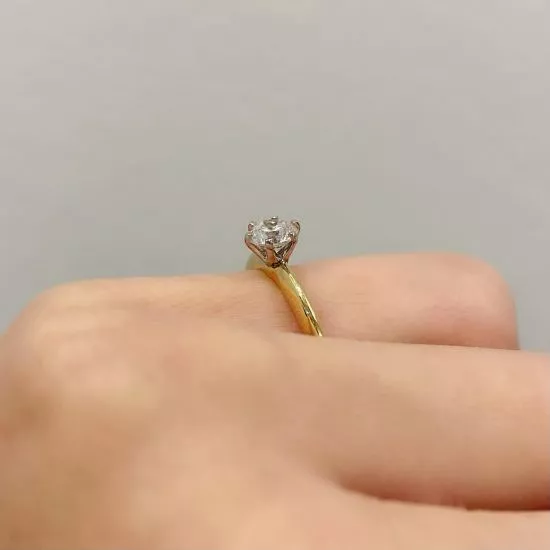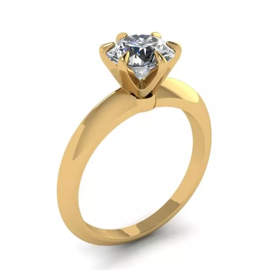圆形钻石 6 爪黄金订婚戒指