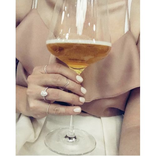 I ordered a ring with a rare champagne-colored diamond cut in the form of a pear with a halo of white diamonds.